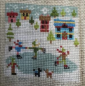 Each piece should have a Holiday motif centered on it; for the charm pieces, please stitch on 6” x 6” squares of white, cream or off white Aida.   Each motif should be no bigger than 3 1/2” x 3 1/2” or 49 stitches by 49 stitches if 14 ct.  For cards, any color or count Aida or even weave sized to fit on a 4 x 5 or 4 x 6 card face.