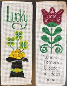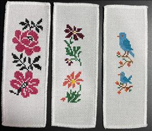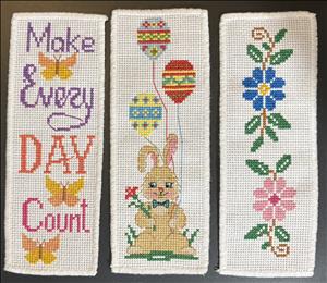 This album is for bookmarks which can be any size or color but each one needs a full cross stitch border around your design, leaving at least six squares around the entire bookmark for unraveling purposes! If there is not sufficient fabric to finish the bookmark, it can't be used.